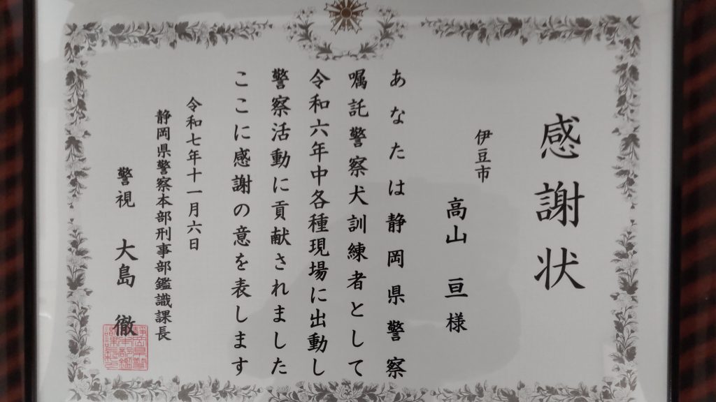 もも♀️は初挑戦でしたが終始意欲的な追及で遺留品も三つ全てポイントして審査員からも良い鼻使いだねと褒めていただきました💮